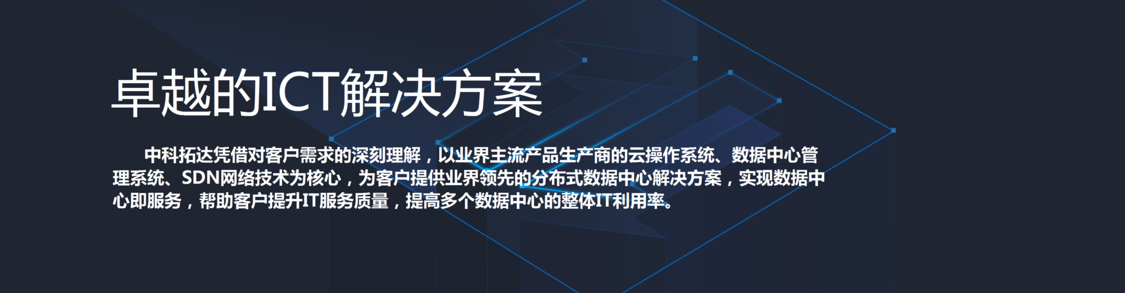 北京中科拓達科技有限公司(以下簡稱“中科拓達”)成立于2012年10月,注冊資金2000萬。公司定位于為行業(yè)用戶信息化業(yè)務提供產品、研發(fā)及服務的綜合解決方案,是專業(yè)從事信息化系統集成的整體項目建設、項目實施、運行維護、故障處理、咨詢培訓等內容的北京市高新技術企業(yè)。
